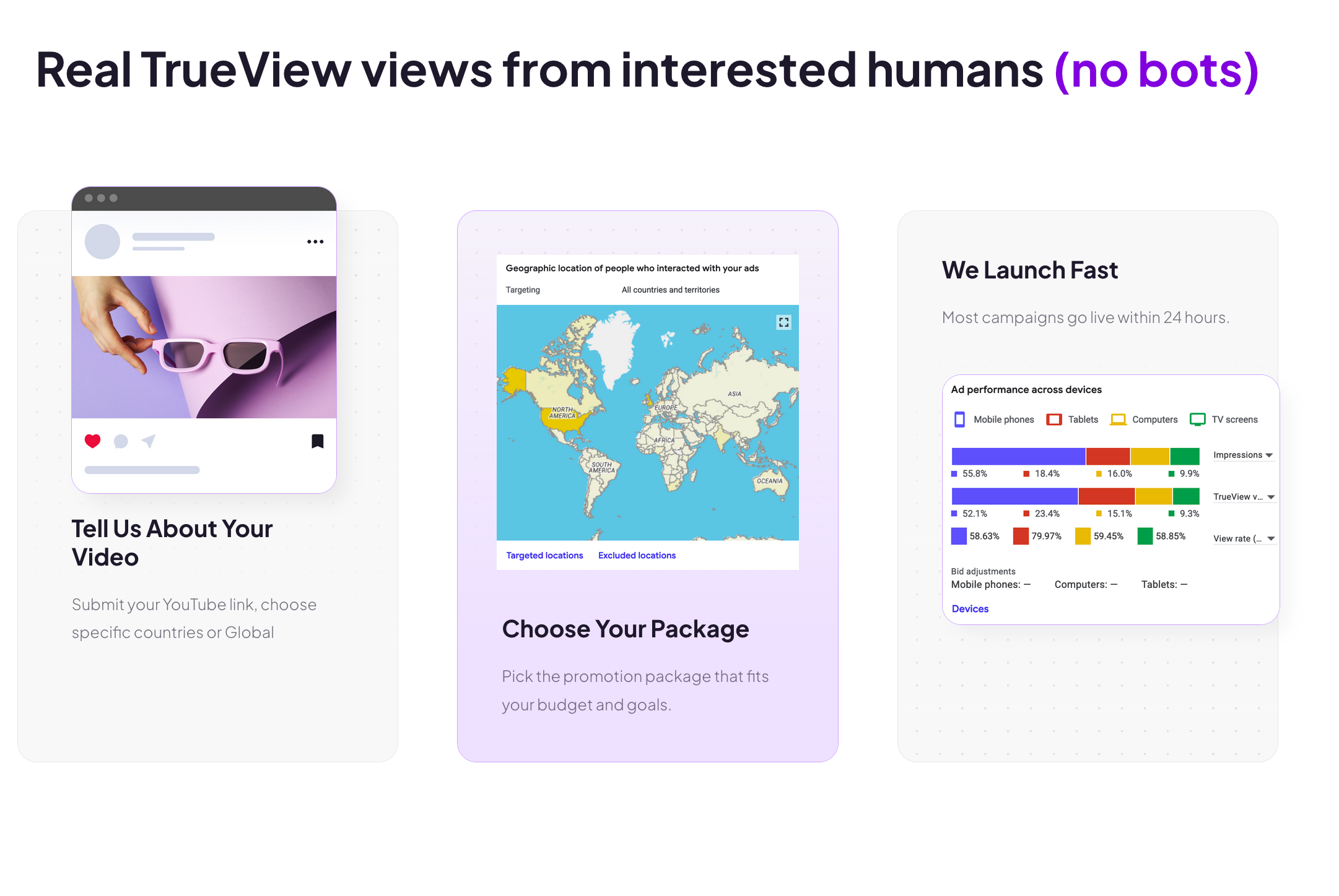 Geographic targeting focuses on key markets like the USA and UK, with options for demographic and interest-based refinement. Campaigns include transparent performance tracking via YouTube Studio, helping creators monitor real engagement without risking platform violations.